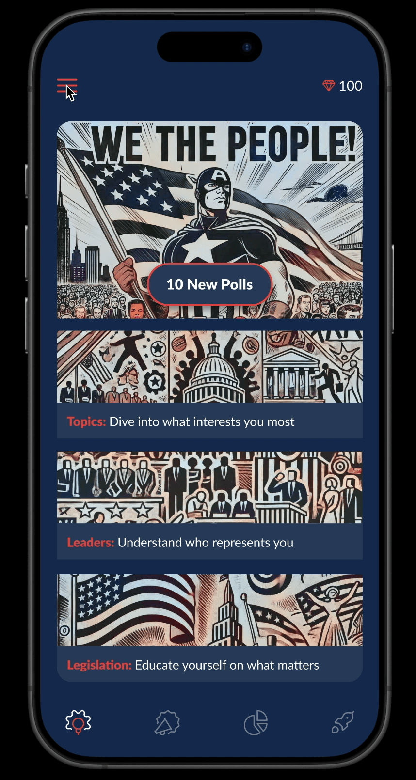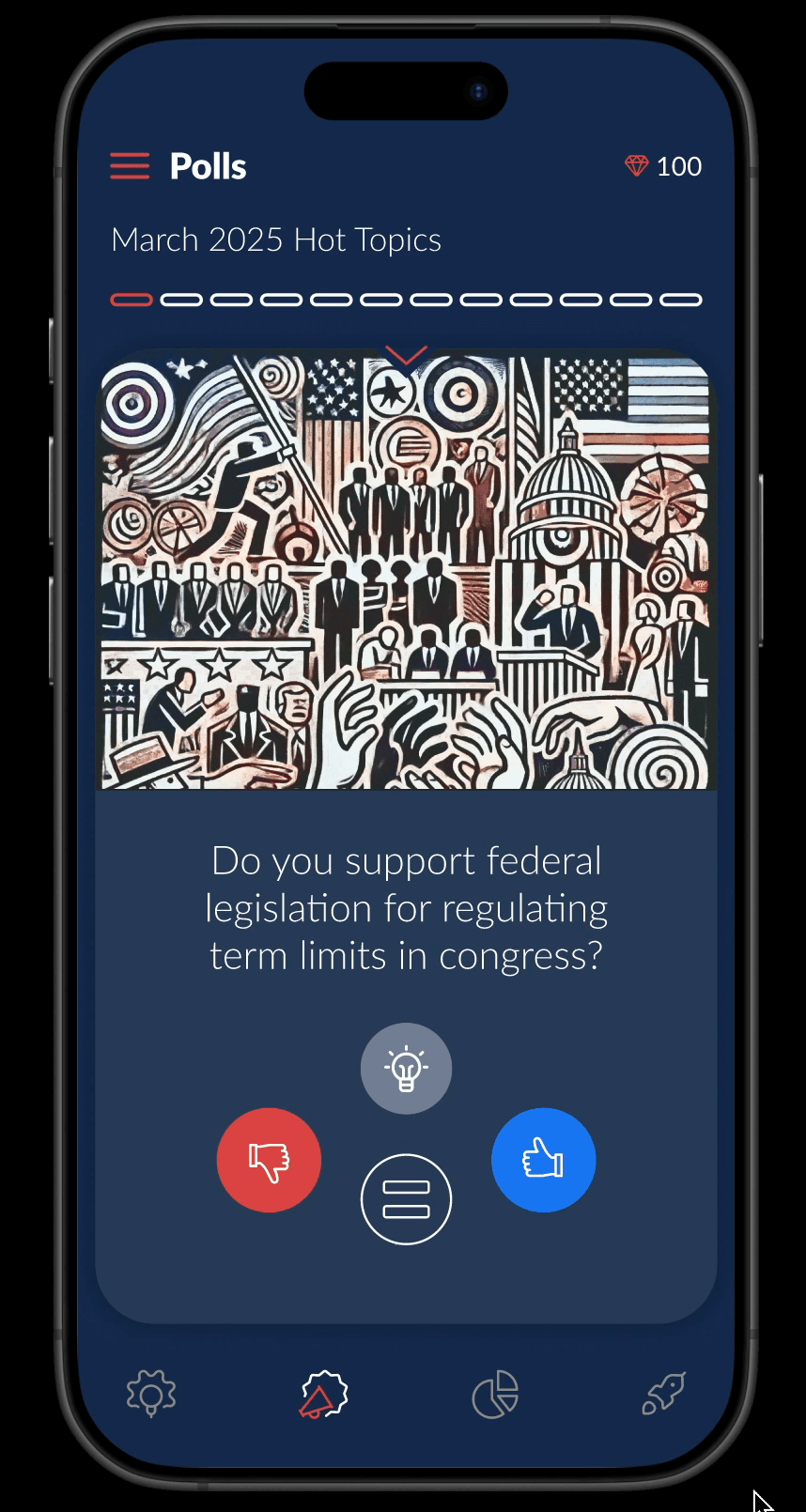 A bold reimagining of citizen engagement, designed to fundamentally transform political discourse by creating a secure, anonymous platform for real-time public sentiment. As lead designer, I created an experience that prioritizes accessibility, privacy, and empirical data while fostering educated civic participation across the political spectrum.